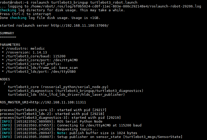 roslaunch turtlebot3_bringup turtlebot3_robot.launch